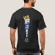 My 11 yo wore adult XL (5’7” 165#). The 8yo is small framed. She wore adult small and tied it in the back. Grandma wore adult large with long sleeve shirt underneath. Tall girl adult medium. Dark haired male adult large. Good quality dark Heather gray, Gildan brand shirt. -it was next up from basic choice and cost about $20 per shirt. Not too thick or thin. Washed and dried well, no major shrinkage. Not see-through. Can wear a bra under it fine. Screen print is just as shown and well done, front and back.