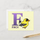 A cartoon Birdorable American Goldfinch perches with the letter F in this original alphabet design. F is for Finch! This is a cute gift idea for back to school time! You can customize this gift. Move the design around, change the background color or style, add text or images -- make it your own!