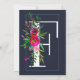 F Monogram Last Initial Modern Blue Floral Wedding Invitation