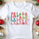 Spread the holiday cheer with this vibrant and fun "Fa La La" Christmas shirt! Featuring bold, multi-colored lettering with festive accents like stars, a Christmas tree, and a candy cane, this design is perfect for adding some joy to your holiday wardrobe. Whether you're attending a Christmas party or enjoying a cozy night in, this playful shirt is sure to bring smiles and festive vibes. It also makes a great gift for anyone who loves Christmas music and the holiday spirit!