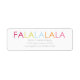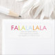 This design features "FA LA LA LA LA" in colorful typography on a white background. Your name and address are set below