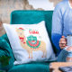 This festive design features a Llama in holiday spirit dressed with Santa hat and red scarf with a gift on his back. the words "Fa La La Llama" are written in modern popular typography. #Christmas #Xmas #llama #holidays #gifts #merry #seasonal #festive #design #style #home #decor #cushions #pillows