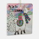 The festive "Fa La La Llama" ceramic ornament is a stylish and cute decoration for any holiday tree. The adorable design sparkles with a sassy and whimsical llama adorned with a trendy blanket, scarf and attractive Christmas present. The lovely llama prances cheerfully across a winter white scene with a snowy tree and colorful blue, pink and green sky. The back of the ornament is winter white, all ready for your custom personalization.