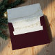Introducing the "Fa La La Magical Gold Sparkle Christmas Carol Burgundy Envelope," a perfect blend of elegance and festive cheer to enhance your holiday correspondence. Designed to capture the very essence of Christmas joy and celebration. The envelope's rich burgundy color serves as a stunning backdrop for the intricate design featuring faux gold streamers, confetti, and sparkling snow. These elements are meticulously arranged to mimic the fluidity of music lines, creating an impression of melodies dancing gracefully in the winter breeze. At the heart of this design is the phrase "Fa la la," cleverly interwoven into the musical lines, embodying the lively spirit of Christmas carols. This visual symphony brings to life the festive songs that fill the air during the holiday season, making it an ideal choice for sending warm wishes to loved ones. Whether you're mailing holiday cards or invitations, this envelope adds a touch of magic and sophistication to your messages, ensuring they are received with the same warmth and joy with which they are sent. Designed by Moodthology Papery