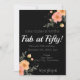 Fab at 50 birthday card. Roses on black. Editable Invitation