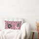 Retro fifties style design throw pillow by Guilty Pleasures Fun pink background with records, adorned on the front side with pink poodle, record, soda bottle, music notes, juke box, and a pink and black pokadot bow. Turn back the clock it's time to rock and roll!