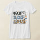 A cheerful ghost floats above the word “FABBOOLOUS,” where bold lettering blends Halloween spirit with stylish flair. Blue “BOO” pops between black and orange accents, surrounded by stars and dots that sparkle with festive energy. This whimsical design celebrates spooky season with sass, sweetness, and a wink of fabulous.