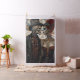 This vibrant and detailed fabric panel features a Day of the Dead-themed illustration of a skeleton couple dressed in elegant attire. The male skeleton dons a top hat and suit, while the female skeleton is adorned with a red rose headpiece and an ornate dress. Their faces are intricately painted in the traditional Dia de los Muertos style, set against a dramatic cloudy sky background. This design captures the essence of the holiday, celebrating love and remembrance. Perfect for creating unique wall hangings, panels, or even as a striking addition to furniture.