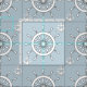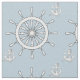 White ship's helm in center with anchors and ropes in upper right and lower left corners. Medium blue background may be customized.