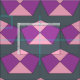 Colorful little islands of purple and pink dot the dark background of this fabric.