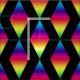 Graphic image of diamond shape in rainbow striations is repeated multiple times over the product. The colored diamonds are spaced on black background. Diamonds are colors of the rainbow from blue at the top, through purple, red, orange, yellow, and green.