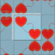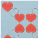 Graphic image of one "wire-heart" flanked by two "solid" hearts on a 45 degree angle. This motif if replicated in the "mirrored" tile, forming squares outlined in hearts. Light blue background may be customized.