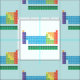 Periodic table Fabric has a repeated design featuring periodic table of the elements, with each element group marked in rainbow colours.