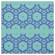 Hexagon pattern is chained together in rows. Dark blue on Light blue.