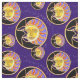 Watercolor Solar Eclipse FABRIC with Golden Bright Sun & Shimmering Moon with Dancing Stars swirled over the dark purple background. This pattern was designed for an international eclipse pattern contest where it placed in the top 25 out of hundreds of entries.