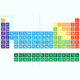 Periodic table Fabric featuring periodic table of the elements, with each element group marked in rainbow colours.