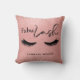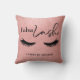 Customize this pillow for her lash salon business. Featuring a faux rose gold background.