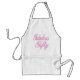 The apron is of very good quality. I used it while icing cookies. The dark colored icing washed off of the apron very well! The neck strap is sturdy and easy to resize on the adult size apron. The print was clear and well defined. I am glad I was able to personalize with name.
