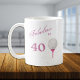 Everyone knows she's fabulous at 40, and this mug will remind her of that! It features your stylized custom text in dark pink, which says FABULOUS AT 40. At the side is a matching pink golf tee with a golf ball image. The text and image are placed on a gold confetti image background, which adds interest and a bit of bling. The image is repeated on the other side, with her name or other custom text in soft gray between them. Perfect for any woman who likes to golf, and is turning the Big 40!