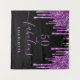 A trendy and glamorous 50th (or any age) birthday napkin. A classic black background decorated with dark purple colored faux glitter drips, paint dripping look. With the text: 50 and fabulous. Personalize and add a name. Light purple colored text. The word Fabulous is written with a modern hand lettered style script with swashes.