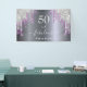 A trendy and glamorous 50th (or any age) birthday. A faux silver metal, foil looking background decorated with purple and faux silver glitter drips, paint dripping look. With the text: 50 and fabulous. Personalize and add a name. White colored text. The word Fabulous is written with a modern hand lettered style script with swashes. Can be used as a welcome banner or party wall decoration.