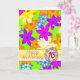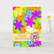 A wedding anniversary card to give to a couple. Fabulous 'op art' flowers in bright colors.A vibrant card that says 'HAPPY!' The multicolored flowers are tumbled across a green background. The card is left blank to use as a note card, or for your own message, See the whole range cards in my store. All artwork copyright by Norma Cornes.