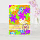 Fabulous 'op art' flowers in bright colors.A vibrant card that says 'HAPPY!' The multicolored flowers are tumbled across a green background.See the whole range cards in my store. All artwork copyright by Norma Cornes.