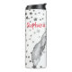 In black, white and gray tones with some red lettering thrown in for color, this 50th birthday thermal tumbler features my original pencil fox drawing on a "metallic" silvery star background. An unusual, unique, fun combination! A different look for a celebration, declaring "50 and Foxy!" Great if you love foxes or animals or are just more "Foxy" than "Fabulous." You can customize the name and any other year can be substituted for "50." (15? 40? 43?) All of the text is easy to personalize using the text templates and Personalize prompts on the product page. Whimsical, unique, original artwork & design by Tuzi Williams.