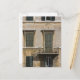 facade of building with a balcony and shuttered postcard