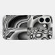 This awesome iPhone case features a black and white pattern that can resemble many shapes and forms but the whole image looks like an evil face with dark staring eyes and a wide grin.