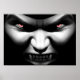 Face of Evil Vampire Poster features an Evil Vampire Face Leering with Glowing Red Eyes and Fangs Bared