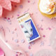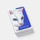 This box of matches comes assembled or assemble yourself. It has the face of a mysterious white cat with bright blue eyes on a deep vibrant blue background. Customize your text with the template.