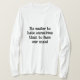 I love this shirt. I had written to the artist asking her if this picture was available on a shirt, and she wrote me back telling me where I could find the shirt. These shirts can be custom made to have a different saying. I loved this saying and went with it. The artist wrote me back later to tell me that she had seen my order go through. How's that for service? Pretty special. It's just as displayed. Perfect!