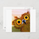 Face owl watercolor bird painting funny postcard