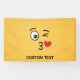 A kissing emoticon. One eye is open, the other is winking. A heart is shown leaving the kissing mouth.
