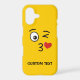 A kissing emoji. One eye is open, the other is winking. A heart is shown leaving the kissing mouth. Custom text.