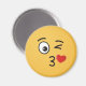 A kissing emoticon. One eye is open, the other is winking. A heart is shown leaving the kissing mouth.