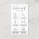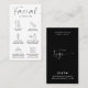 Ensure your clients know how to take care of their skin with a custom facial aftercare business card. This elegant beauty facial treatment care instructions card includes care icons for each step and a calligraphy style font with black and white background design. This trendy aesthetician business card is the perfect addition to your salon stationery design.