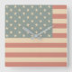 A rustic style American Flag decorates this stylish wall clock. The design is from original art.