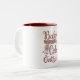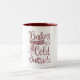 Baby Its Cold Outside faded burgundy Script Two-Tone Coffee Mug. Coffee mug design features "Baby It's Cold Outside" faded burgundy modern script writing text typography design.