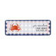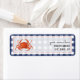 Return address labels featuring an illustration of a crab over a faded blue gingham background. Look for coordinating wedding suite at Jill's Paperie.