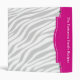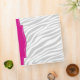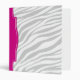 Custom recipe binder designed with a gray & white zebra stripes pattern, a fuchsia pink frame over the spine, and personalized with your own name or text on the spine. Use this 3-ring binder for gathering and organizing all of your favorite recipes, or for any other personal or professional use.
