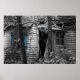 Fading Away, this poster features a abandoned old rural house decaying, black and white photo with bright blue shutter.
