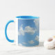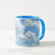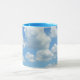 A picture of the sky and the fading blue colors with puffy white clouds.