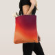 VIVIDLUXE Modern Aesthetic. Carry the warm, glowing energy of fading embers with this stylish Tote Bag. The design features a smooth vertical gradient with swirling blends of deep burgundy, vibrant fiery orange, and soft muted peach, creating a hypnotic and warm abstract pattern. This minimalist, text-free art piece adds a touch of sophisticated warmth to your everyday style.