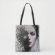 Fading grayscale pixel portrait with emotion tote bag