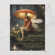 A female faerie, with translucent and luminous wings, sitting beneath an illuminated orange mushroom, and staring into the stream that runs near her feet, as the rain pours around her.