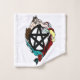 A drawing of four types of faeries; a nymph, a dragon, a satyr, and a sylph, on the outside of a pentacle.