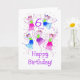 A very pretty birthday card for a six year old, with five fairies dancing and sprinkling fairy dust, from a watercolour painting by Judy Adamson. Matching birthday party invitations and gifts also available.