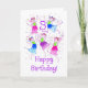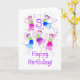 A very pretty birthday card for a 3 yr old with dancing fairies, sprinkling fairy dust, from a watercolour painting by Judy Adamson. The inside is left blank for your own message. Matching T-shirts party invitations and gifts also available.
